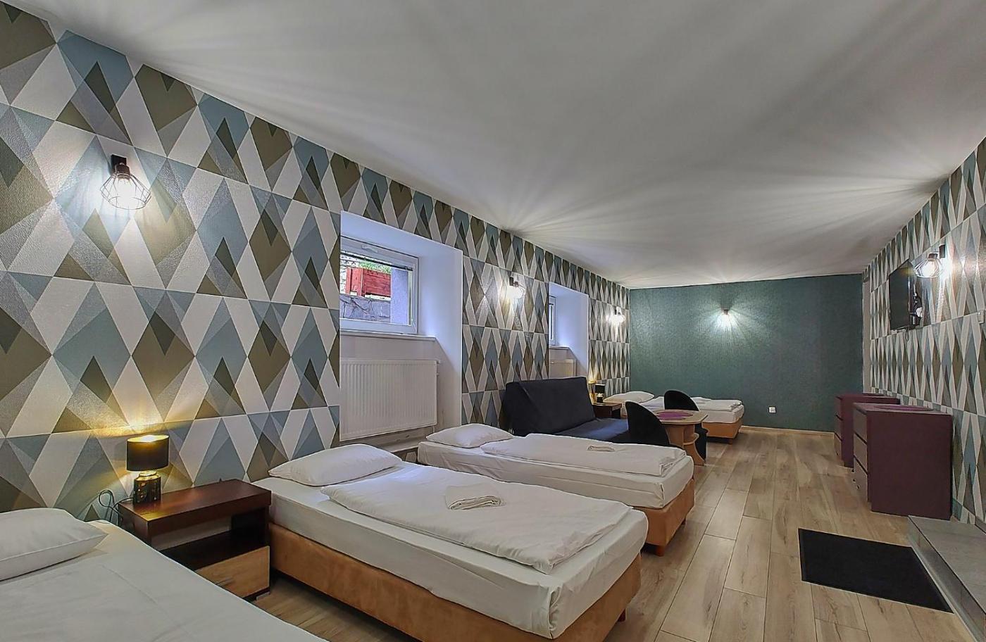 Pokój czteroosobowy z prywatną łazienką. This quadruple room has a private bathroom, heating and garden views. The unit has 3 beds. Pokój Czteroosobowy - 4 osobowy. Powierzchnia pokoju ok.: 16 mkw. ;