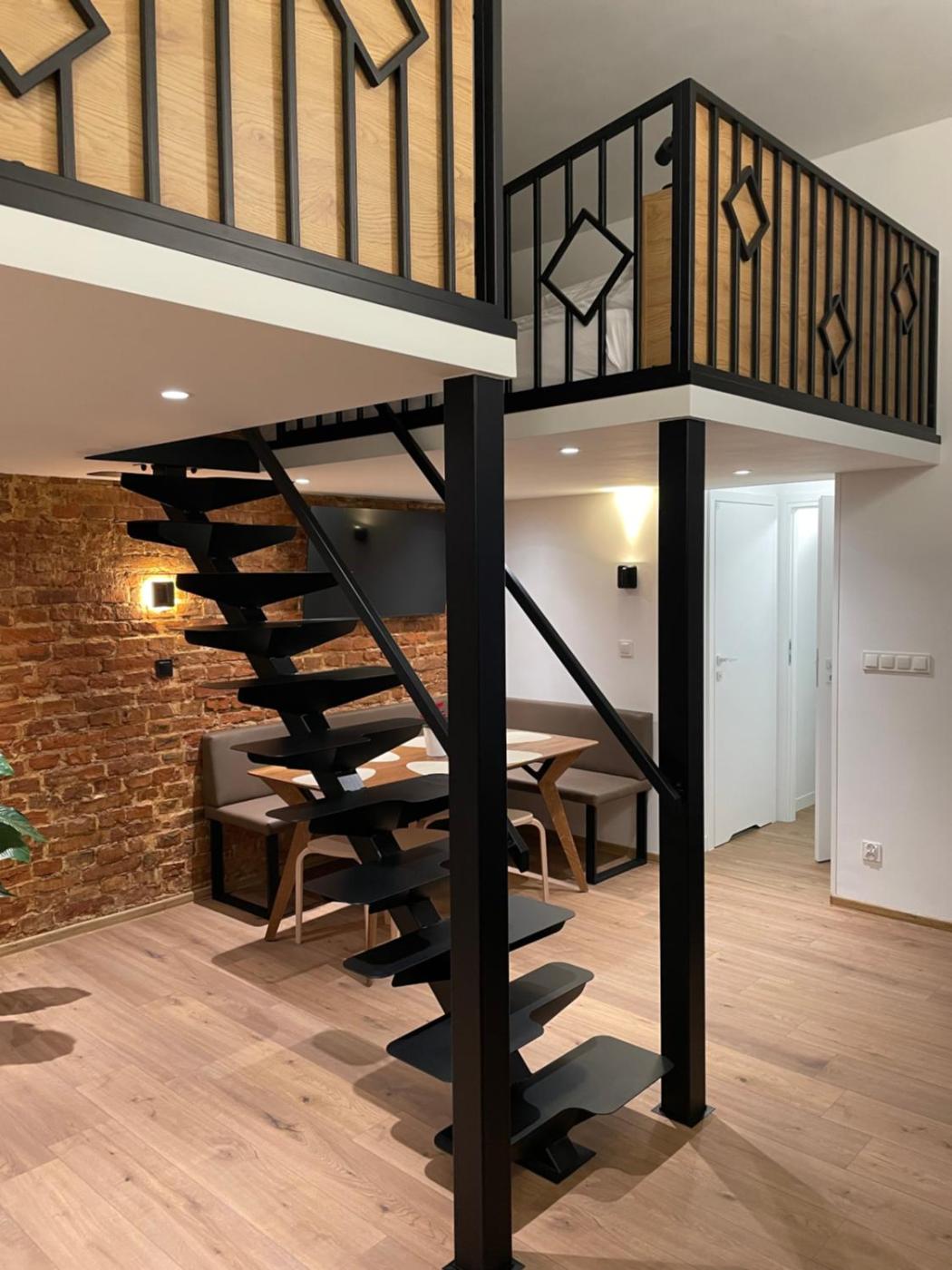 Apartament z 1 sypialnią. An apartment featuring a double bed on the entresol and a sofa bed in the living room. Apartament - 6 osobowy. Powierzchnia pokoju ok.: 55 mkw. ;
