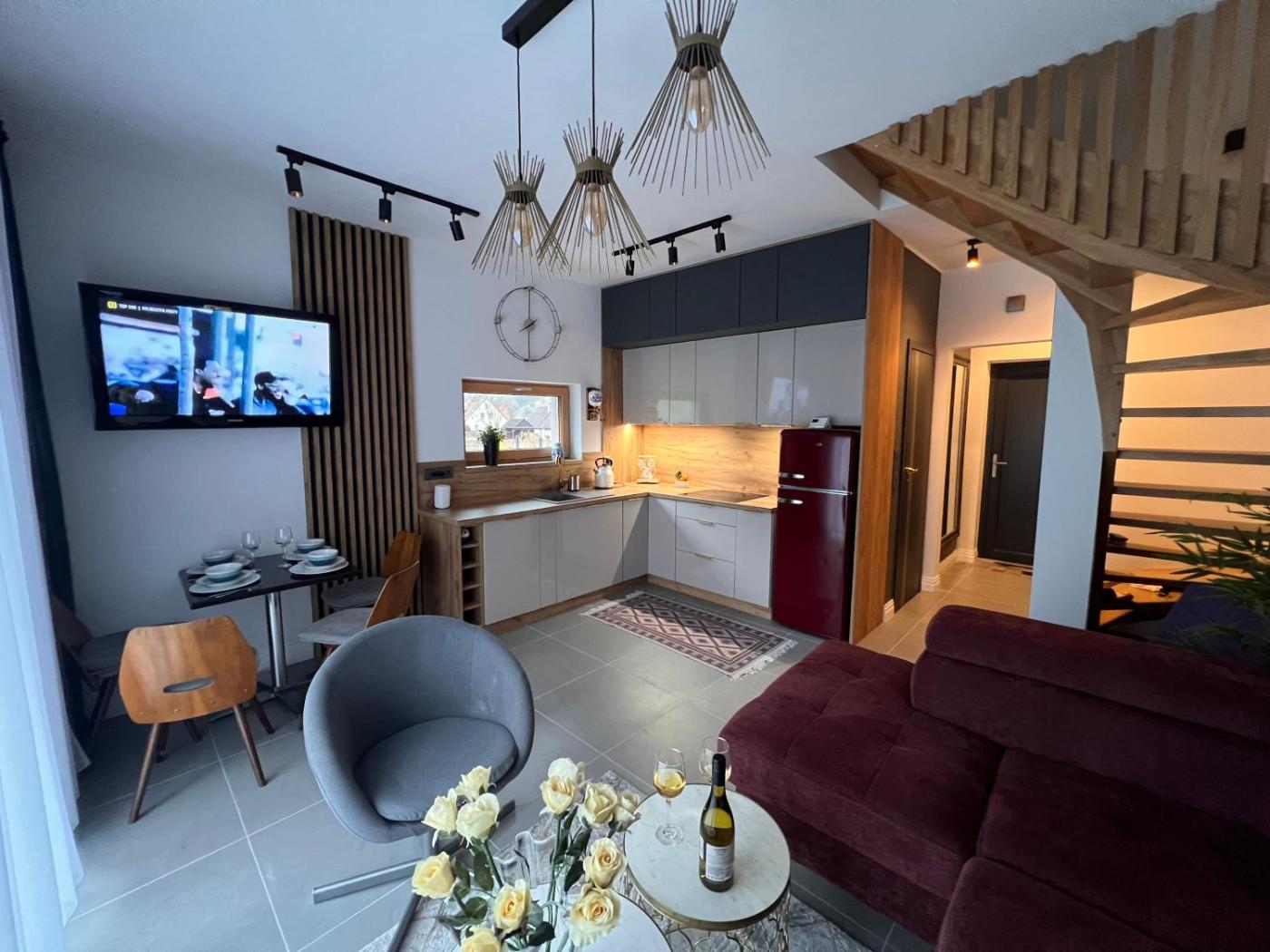 Domek z 2 sypialniami. In the fully equipped kitchenette, guests will find a stovetop, a refrigerator, a dishwasher and kitchenware. Boasting a terrace with garden views, this chalet also offers a washing machine and a flat-screen TV. The unit has 3 beds. Domek - 6 osobowy. Powierzchnia pokoju ok.: 58 mkw.