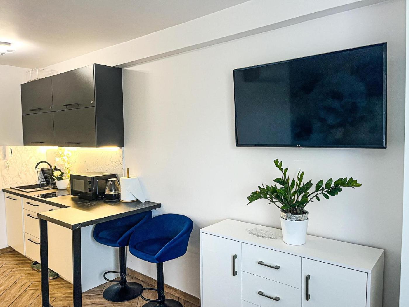 Apartament z 1 sypialnią. Guests will have a special experience as the apartment features a sauna. Featuring a private entrance, this air-conditioned apartment consists of a kitchenette, 1 bedroom and 1 bathroom with a shower and a hairdryer. In the kitchenette, guests will find a stovetop, a refrigerator, kitchenware and a microwave. The apartment provides a flat-screen TV, a dining area, a wardrobe, an electric kettle as well as garden views. The unit offers 1 bed. Apartament - 2 osobowy. Powierzchnia pokoju ok.: 20 mkw.