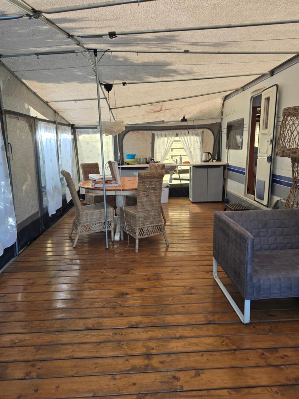 Przyczepa kempingowa. The mobile home features a dining area and a wardrobe, as well as a shared bathroom boasting a shower. Among the room amenities are a private entrance, a tea and coffee maker, a seating area as well as an outdoor dining area and garden views. The unit has 2 beds. Domek holenderski - 5 osobowy. Powierzchnia pokoju ok.: 25 mkw. ;